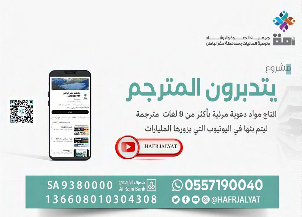 انتاج مواد دعوية مرئية بأكثر من 9 لغات مترجمة ليتم بثها في اليوتيوب وقنوات التواصل الإجتماعي.